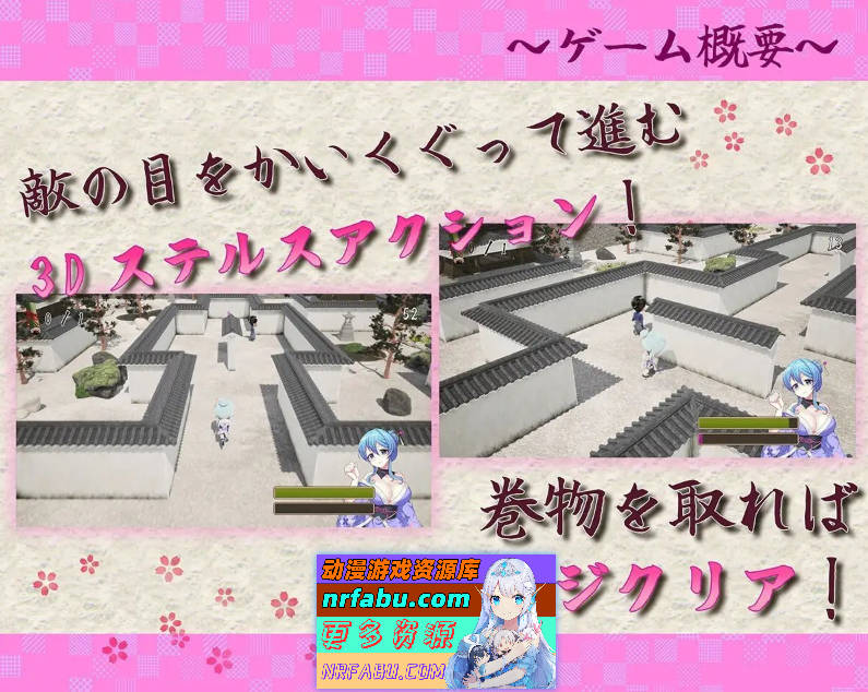 玩家将操控主人公”菖蒲”,在避开敌人视线的同时,以获取关卡中的卷轴为目标。